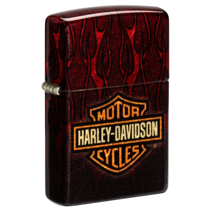 Benzinový zapalovač Zippo z kolekce Harley-Davidson. Zapalovač je zdobený třpytícími se plameny pomocí technologie 540 fusion. Schránku s luxusními mosaznými tóny dokonale doplňuje zlatý insert. Dodáváno v ekologicky šetrné dárkové krabičce.